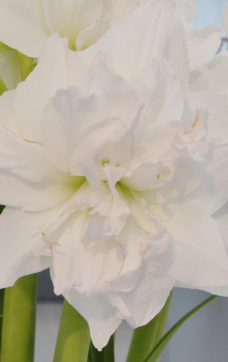 Amaryllis Arctic Nymphillä on puhtaanvalkoiset kukat.