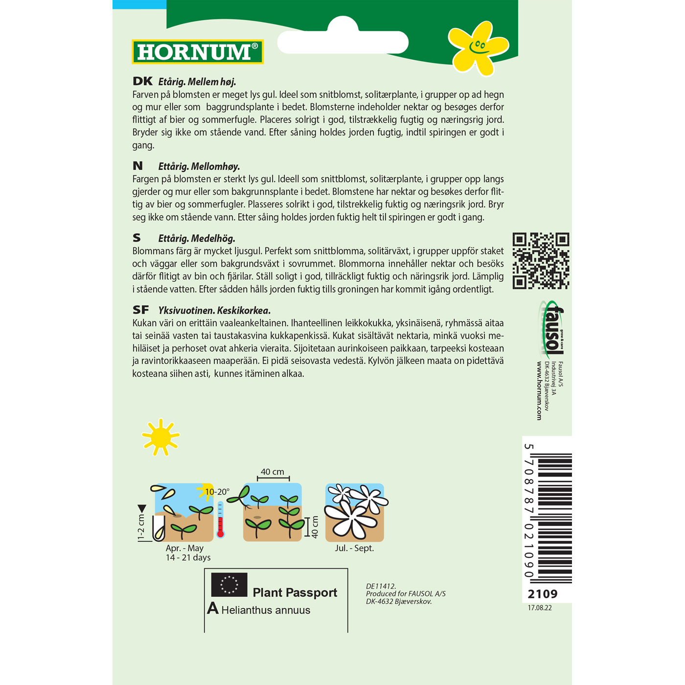 Yksivuotinen ja puolikorkea auringonkukka, jonka kukat ovat väriltään kauniin vaaleankeltaiset. Tämä lajike on ihanteellinen leikkokukaksi, näyttäväksi yksittäiskasviksi tai ryhmiin istutettuna aitojen ja seinustojen viereen. Se sopii erinomaisesti myös kukkapenkin taustakasviksi tuomaan korkeutta.