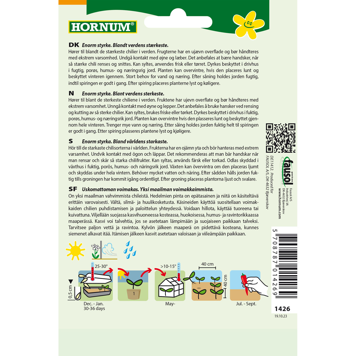 Äärimmäisen tulinen – yksi maailman vahvimmista. Tämä lajike kuuluu maailman tulisimpiin chililajikkeisiin. Sen hedelmät ovat pinnaltaan epätasaisia, ja niitä on käsiteltävä erittäin varovasti. Vältä ehdottomasti kontaktia silmiin tai huuliin. Suosittelemme suojakäsineiden käyttöä näin vahvan chilin perkaamisessa ja pilkkomisessa.