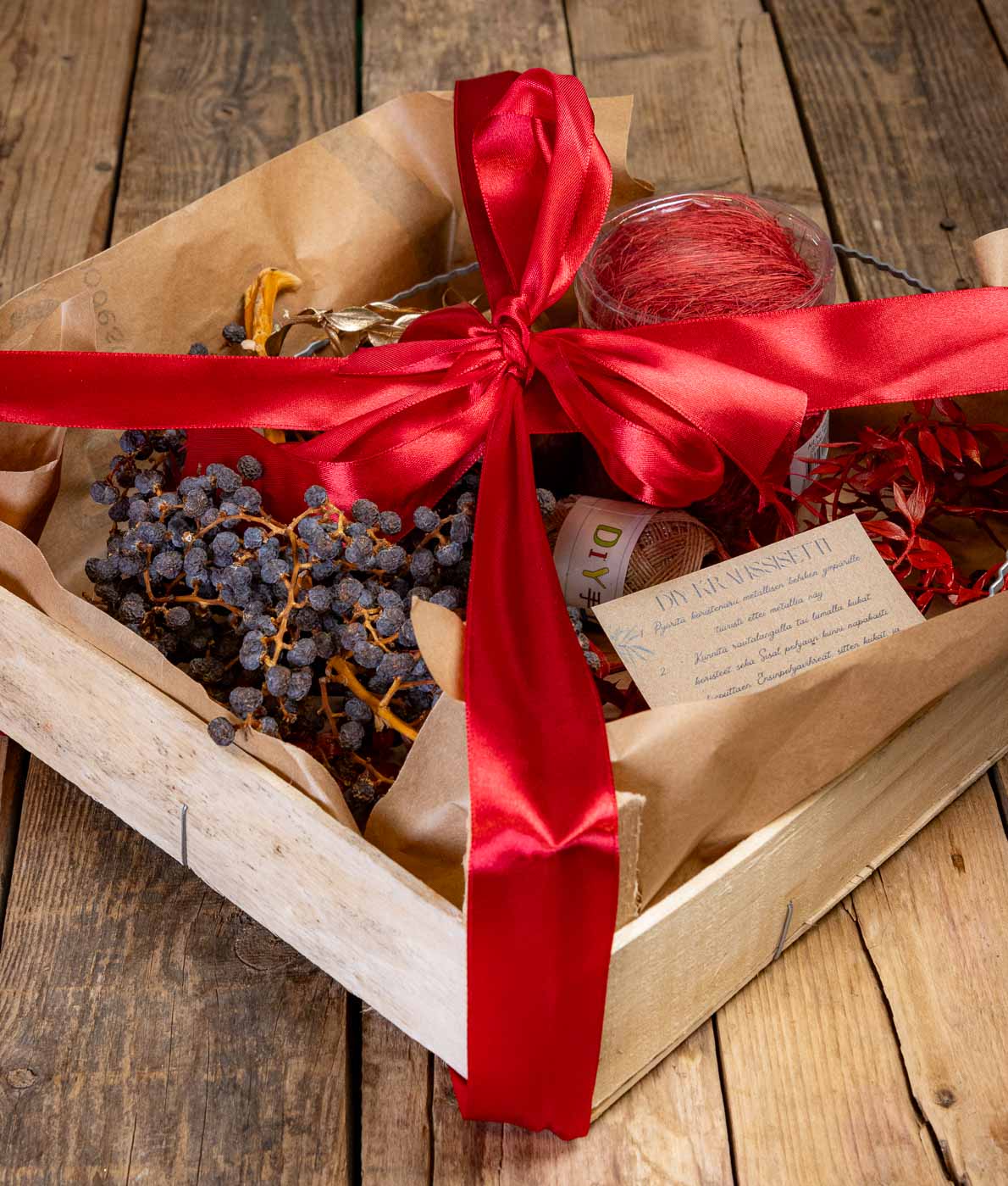 - Erilaisia luonnonmateriaaleja, kuten kuivakukkia, marjoja ja oksia