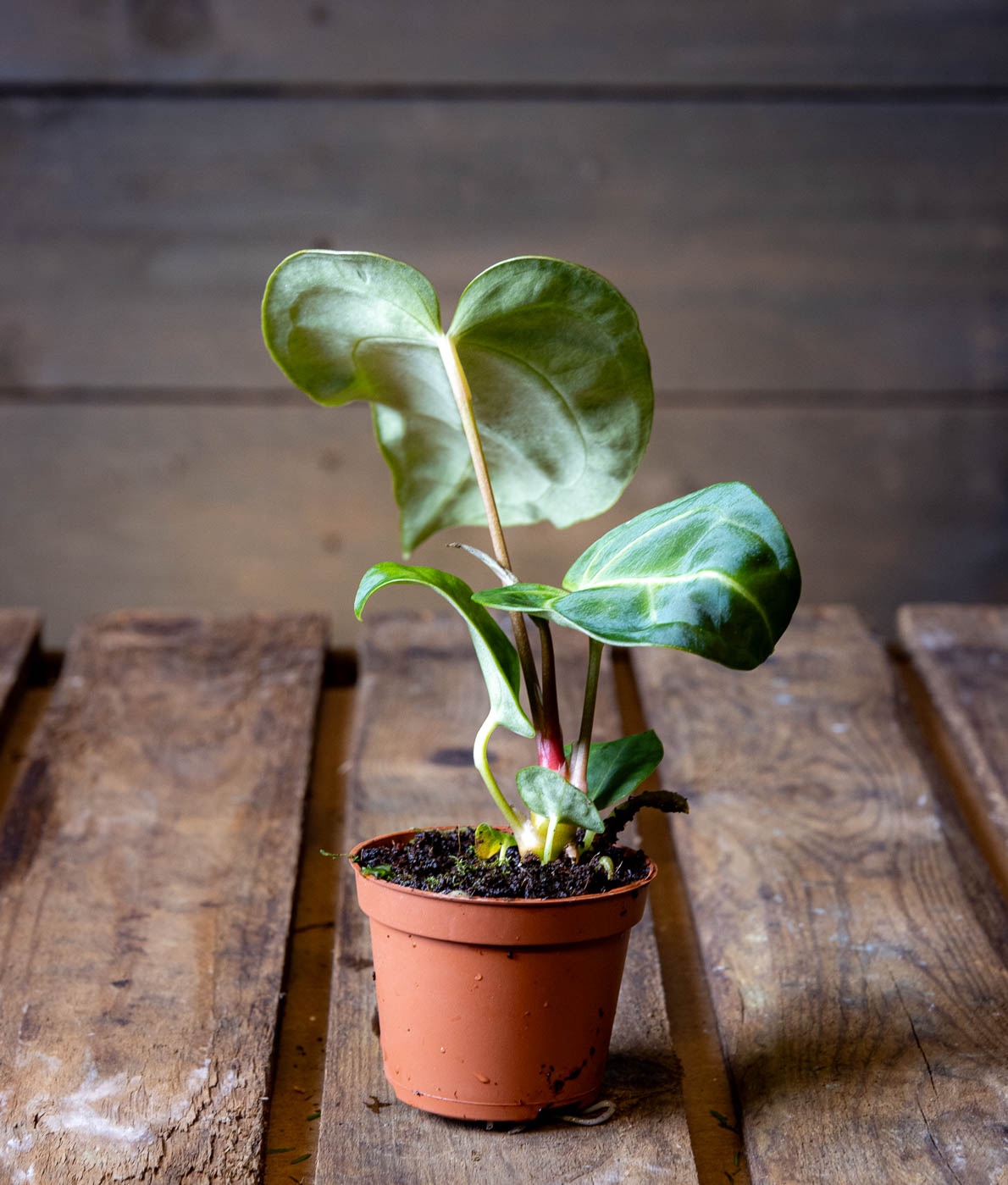 Flamingokukka Regale Anthurium regale on yksi huonekasvimaailman näyttävimmistä lajeista. Se tunnetaan poikkeuksellisen suurista ja sydämenmuotoisista lehdistään, joissa on upea hopeinen suonitus ja ylellinen samettipinta. Vaikka kasvi saapuu pienenä ja sirona 6 cm taimena, se on palkitseva kasvatti, joka kasvattaa jokaisella uudella lehdellä entistä vaikuttavampaa ja kookkaampaa vehreyttä. Tämä laji on tarkoitettu harrastajalle, joka haluaa kotiinsa palasen aitoa sademetsän tuntua.