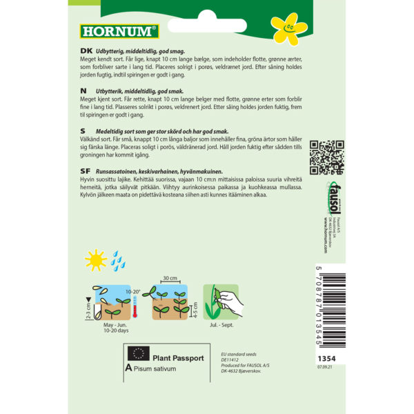 Runsassatoinen, keskivarhainen, hyvänmakuinen. Hyvin suosittu lajike. Kehittää suorissa, vajaan 10 cm:n mittaisissa paloissa suuria vihreitä herneitä, jotka säilyvät pitkään. Viihtyy aurinkoisessa paikassa ja kuohkeassa mullassa. Kylvön jälkeen maata on pidettävä kosteana siihen asti kunnes itäminen alkaa.