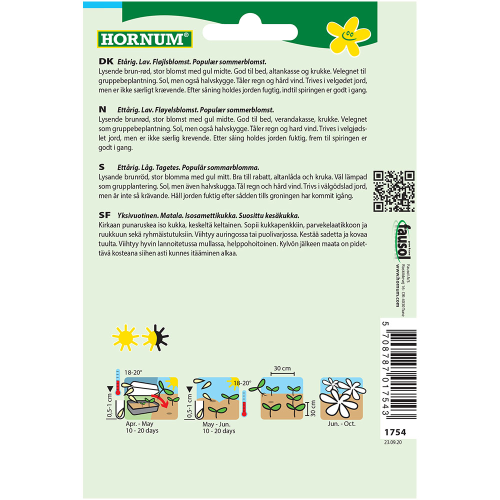 Yksivuotinen. Matala. Suosittu kesäkukka. Kukka kirkkaan punaruskea, keskeltä keltainen. Sopii kukkapenkkiin, parvekelaatikkoon ja ruukkuun sekä ryhmäistutuksiin. Viihtyy auringossa tai puolivarjossa. Kestää sadetta ja kovaa tuulta. Viihtyy hyvin lannoitetussa mullassa, helppohoitoinen. Kylvön jälkeen maata on pidettävä kosteana siihen asti kunnes itäminen alkaa.