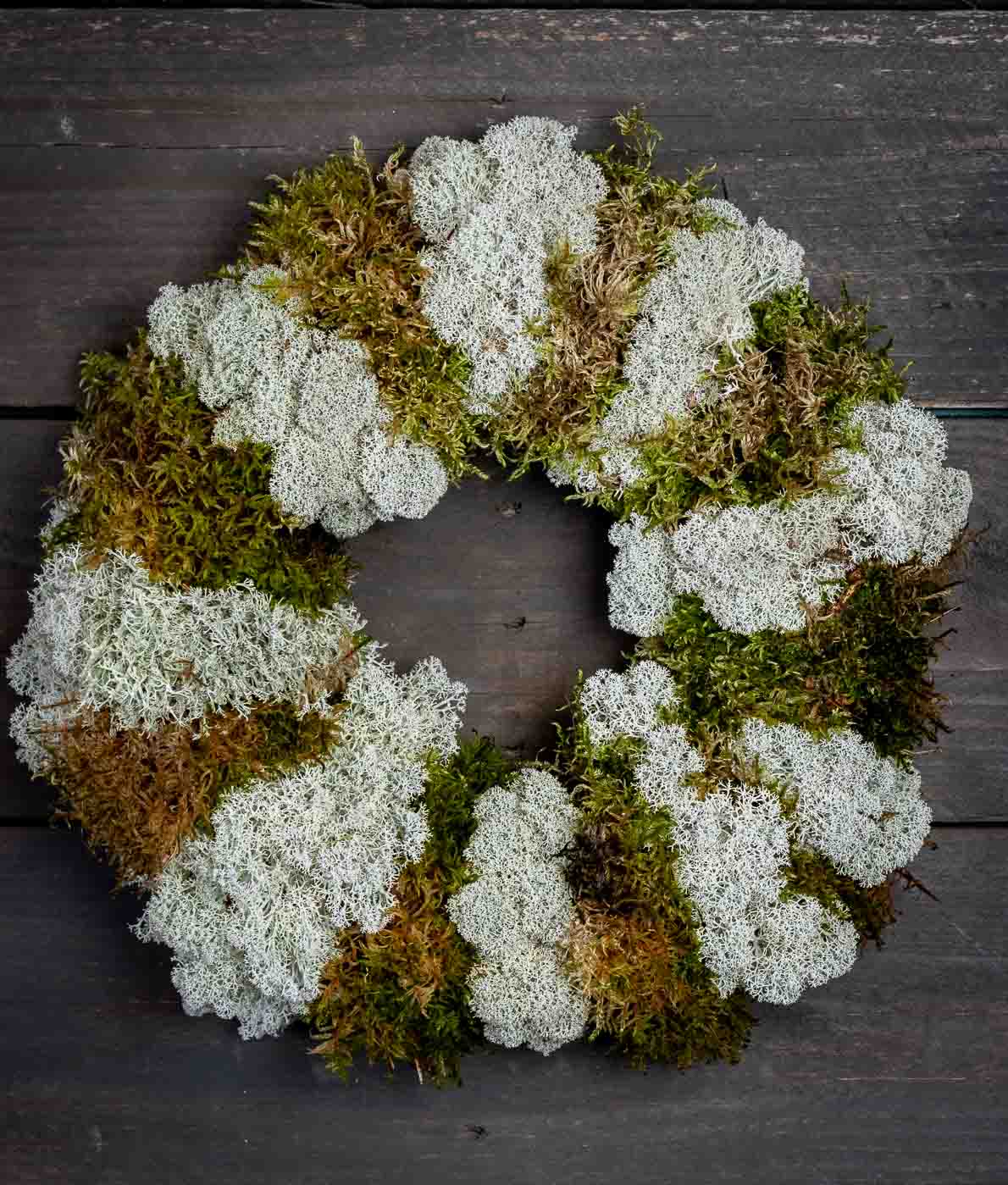 Jäkäläsammalkranssi on suosittu vaihtoehto haudalle tai ovessa pidettäväksi.