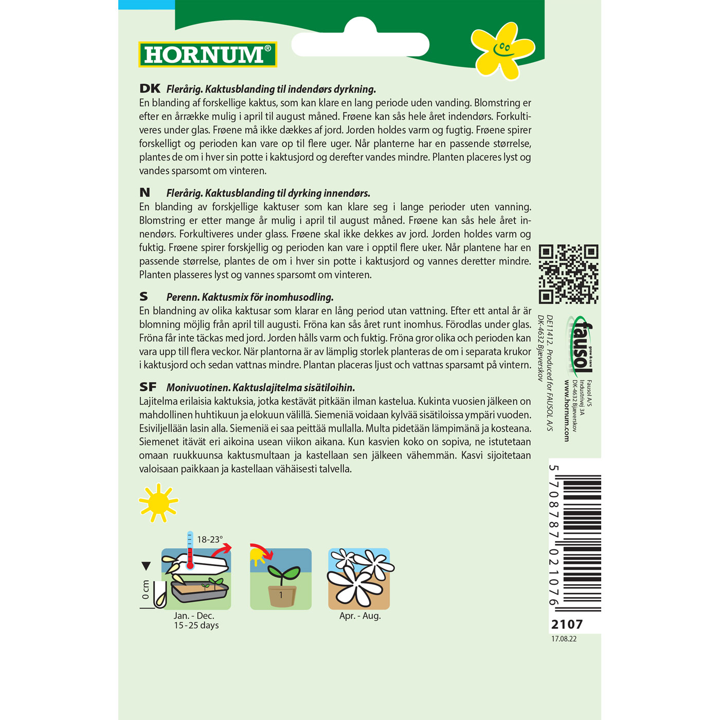 Monivuotinen. Kaktusseos sisäkasvatukseen. Sekoitus erilaisia kaktuksia, jotka kestävät pitkiäkin aikoja ilman kastelua. Kukinta on mahdollinen muutaman vuoden kuluttua, yleensä huhti–elokuussa.