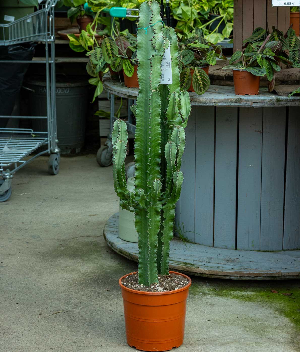 Haluatko kotiisi näyttävän ja arkkitehtonisen viherkasvin, joka on samalla äärimmäisen helppohoitoinen? Kandelabrakaktus (Euphorbia erytrea) on juuri sellainen! Tämä upea kasvi ei nimestään ja ulkonäöstään huolimatta ole aito kaktus, vaan se kuuluu tyräkkien laajaan sukuun. Sen pystyt, haarautuvat varret muodostavat nimensä mukaisesti kynttelikköä muistuttavan, veistoksellisen hahmon, joka tuo modernia ja näyttävää tunnelmaa mihin tahansa tilaan.