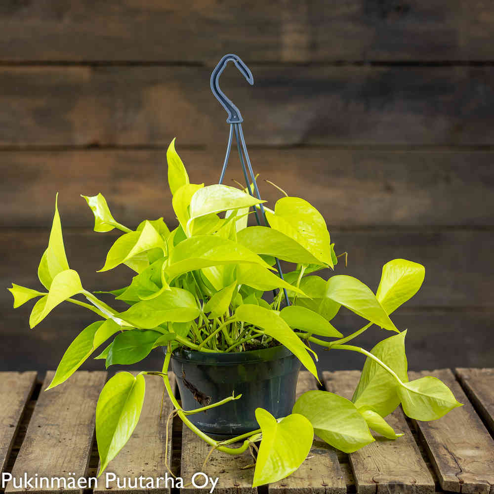 Kultaköynnös Neon amppelissa on sähäkän keltainen kultaköynnöslajike.