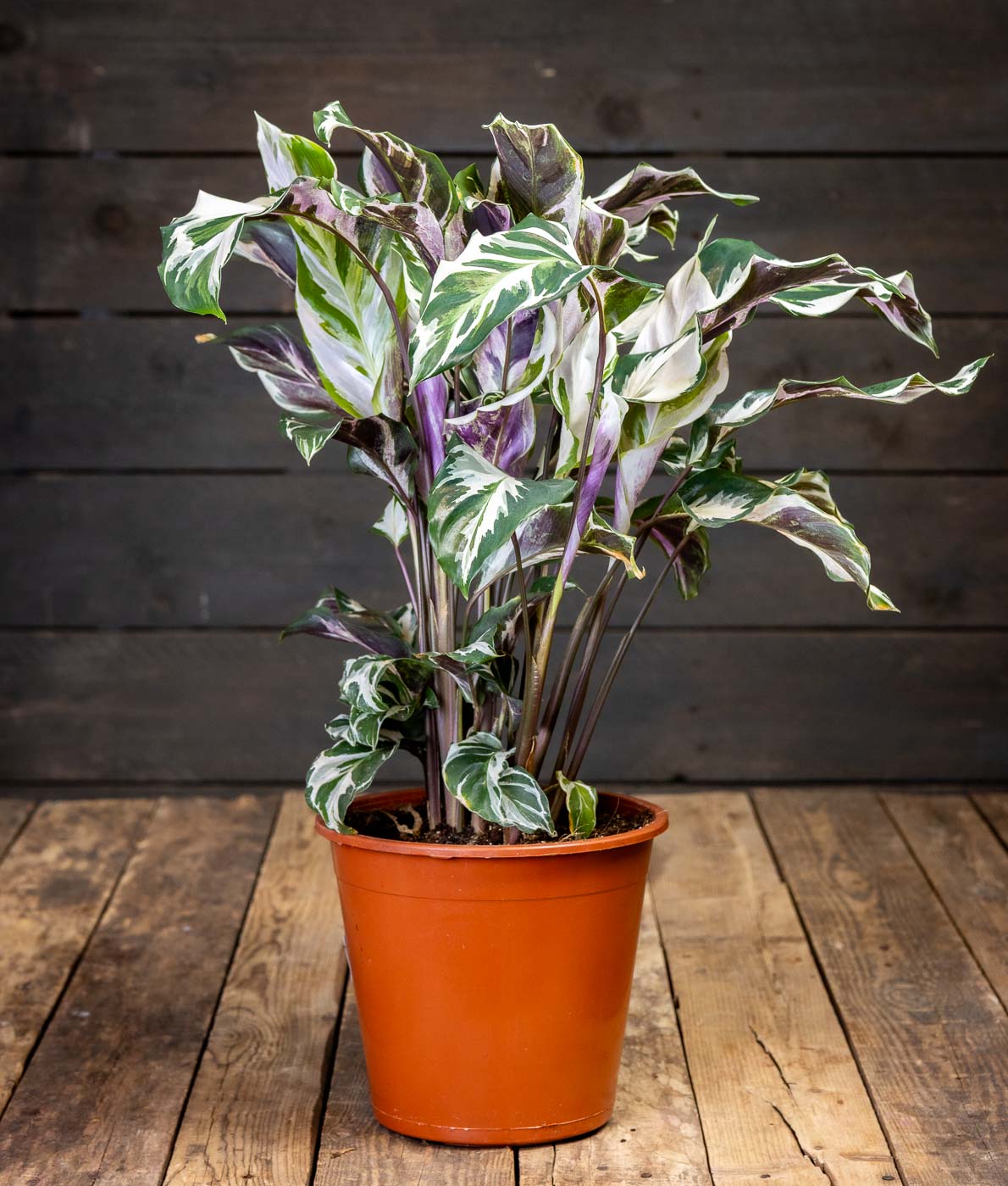 Maija White Fusion (Goeppertia lietzei White Fusion, syn. Calathea) on yksi näyttävimmistä ja halutuimmista maijalajikkeista. Sen lehdistö on poikkeuksellisen koristeellinen: jokainen lehti on uniikki yhdistelmä raikasta valkoista ja eri vihreän sävyjä, jotka luovat marmorimaisen vaikutelman. Lehtien alapinta on maijoille tyypilliseen tapaan dramaattisen liilanpurppura, mikä luo upean kontrastin vaalealle yläpinnalle.