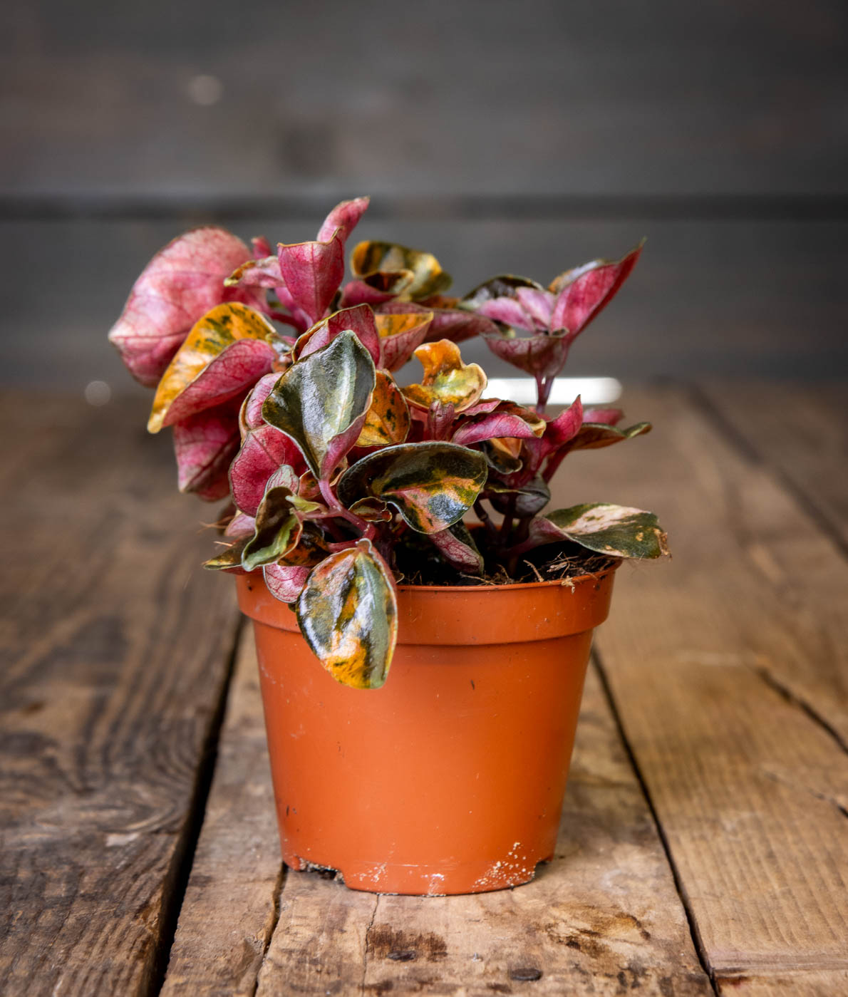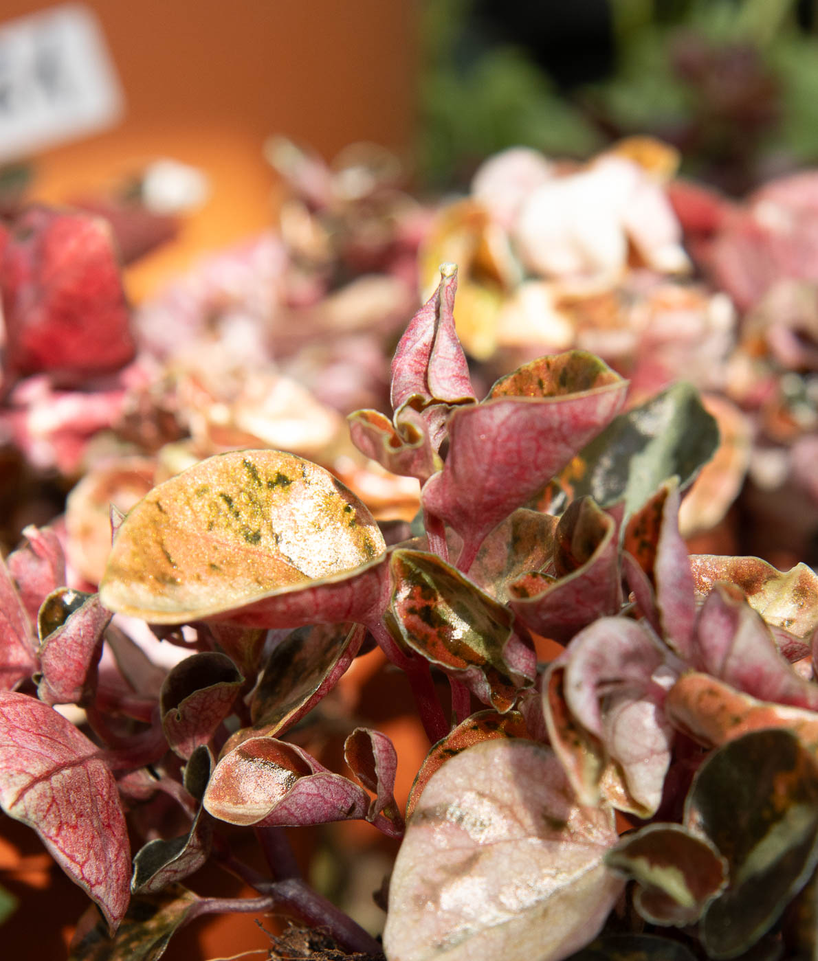 Muorinkukka Creme Brulee on upea kiiltomuorin lajike, jonka ovaalinmuotoiset, kiiltävät ja nahkeat lehdet ovat kuin pieniä taideteoksia. Lehtien väritys vaihtelee kerman ja karamellin sävyistä vaaleanpunaiseen ja viininpunaiseen, ja tummanvihreät raidat tuovat syvyyttä. Varret ovat punertavat ja kasvutapa tiivis. Väritys on voimakkain runsaassa valossa.