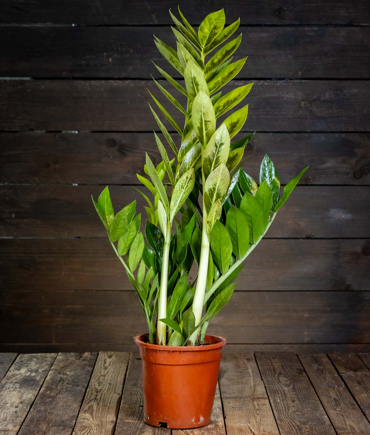 Palmuvehka Pixie (Zamioculcas zamiifolia) on ihastuttava pikkusisar perinteiselle palmuvehkalle. Sen lehdet kasvavat huomattavasti tiiviimmin ja kasvutapa pysyy kauniin kompaktina sekä matalana. Paksut ja kiiltävät, tummanvihreät lehdet varastoivat vettä, mikä tekee tästä kasvista uskomattoman sitkeän selviytyjän. Palmuvehka onkin yksi kiitollisimmista ja helppohoitoisimmista viherkasveista. Se antaa hoitovirheitä paljon anteeksi ja sopii loistavasti myös huolettomammalle kasvinhoitajalle.