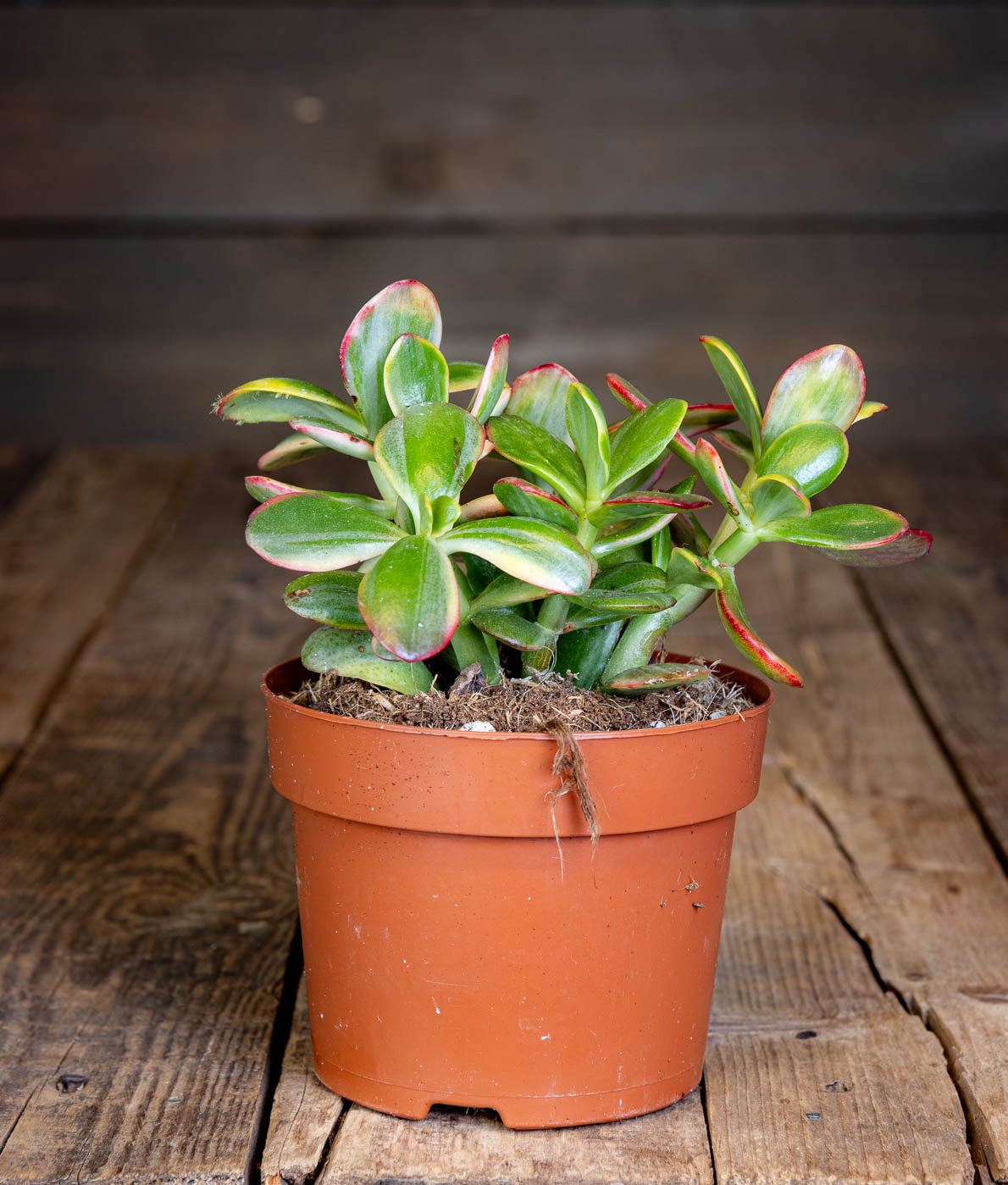 Rahapuu Tricolor (Crassula ovata Tricolor) on todellinen vihersisustuksen väripilkku. Tämä kaunis mehikasvi erottuu perinteisestä rahapuusta upeilla lehdillään, joita koristavat vihreän, kermanvalkoisen ja hennon vaaleanpunaisen sävyt. Aurinkoisella paikalla sen lehtien punertavat reunat nousevat entistä upeammin esiin.