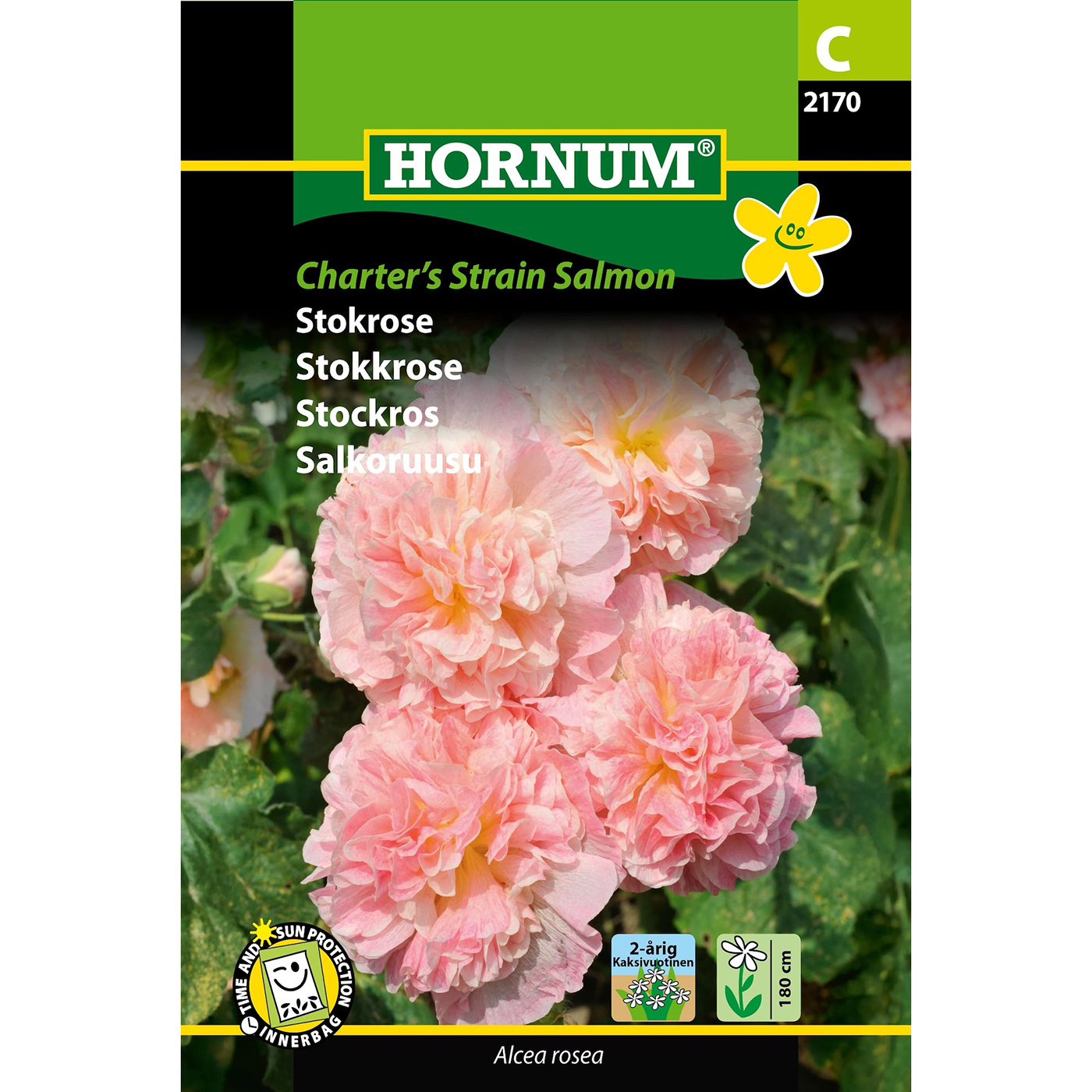 Kaksivuotinen ja näyttävä salkoruusu, joka tuottaa suuria, kerrannaisia kukkia upeissa lohenvärisissä sävyissä. Tämä lajike on loistava valinta romanttiseen puutarhaan, maalaistalon pihapiiriin, etelänpuoleisten seinustojen viereen tai kukkaryhmiin. Se on kaunis sekä yksittäiskasvina että suurempina ryhminä aidan vierustalla.