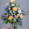 Pakkaamme hautakimppuihin hyvän kosteuden mukaan ja laitamme varsien peitoksi kauniin vihreän kuitukankaan. Halutessasi voit sen irroittaa ennen kimpun laskemista.