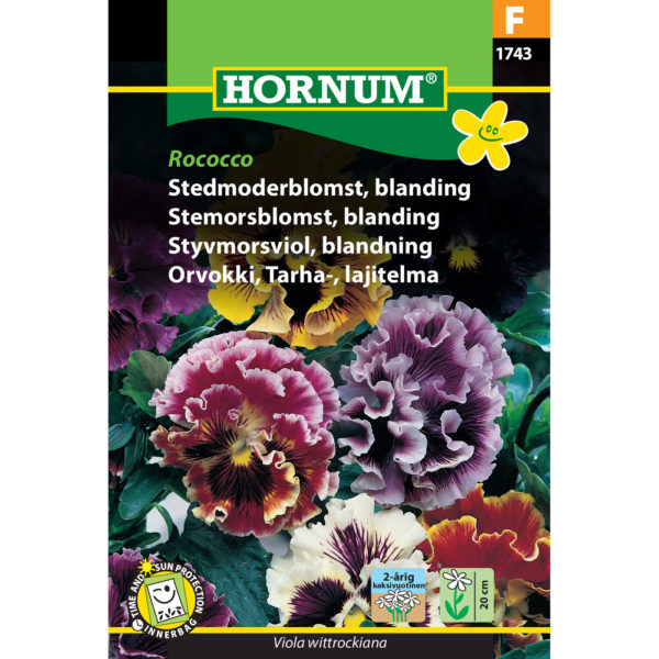 Kaksivuotinen suurikukkainen tarhaorvokki lajitelma. Suuret, kähärälehtiset ja moniväriset kukinnot.