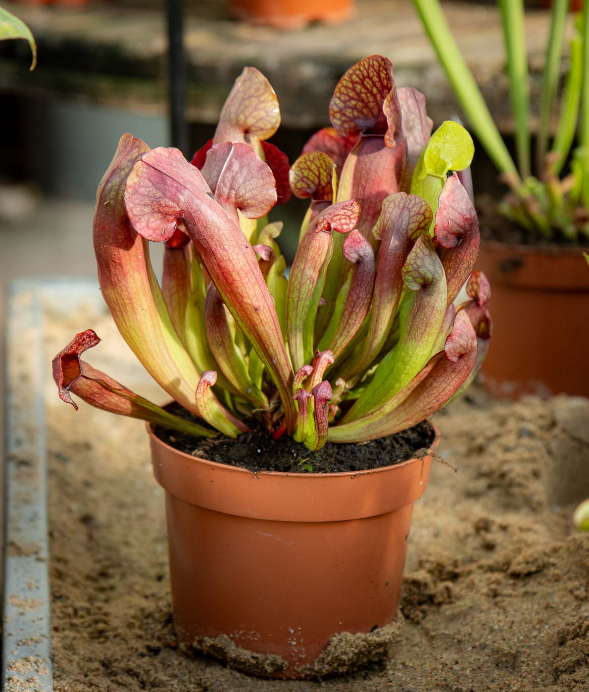 Tuo pala villiä luontoa ja kiehtovaa eksotiikkaa kotiisi tällä upealla tötterölehdellä! Sarracenia, suomalaisittain tötterölehti, ei ole mikä tahansa viherkasvi. Se on aktiivinen saalistaja, jonka näyttävät, kannumaiset ansat houkuttelevat ja nappaavat pieniä hyönteisiä, kuten kärpäsiä ja ripsiäisiä. Tämä tekee siitä paitsi näyttävän myös hyödyllisen lisän mihin tahansa kotiin.