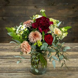 Ei hätää, teemme sidontatyöt kukista, joita valikoimastamme löytyy sillä hetkellä.